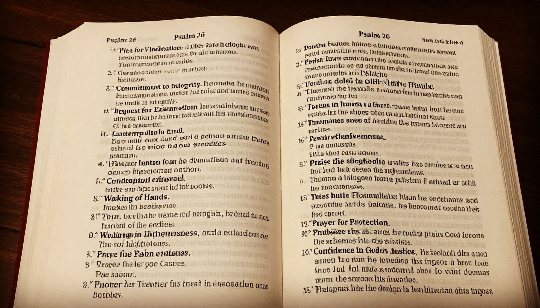 En resumen, el Salmo 26 perdura no solo por su belleza literaria, sino por su profundidad teológica. Su llamado a la honestidad y su confianza en la providencia divina lo mantienen vigente. Este texto sigue inspirando a creyentes y estudiosos, demostrando su eterna relevancia.